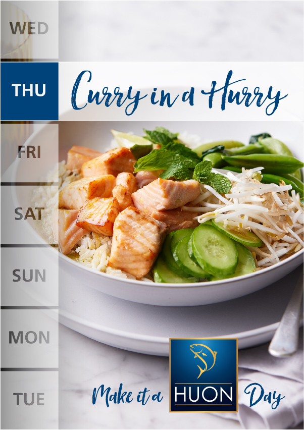 We focused on the ease, convenience and quality of the products with the use of a series of delicious recipe images which tied in with different days of the week, recipe suggestions such as 'One Pot Wonder', 'Curry in a Hurry', Midweek Magic'... and a consistent pay off line 'Make it a HUON Day'.