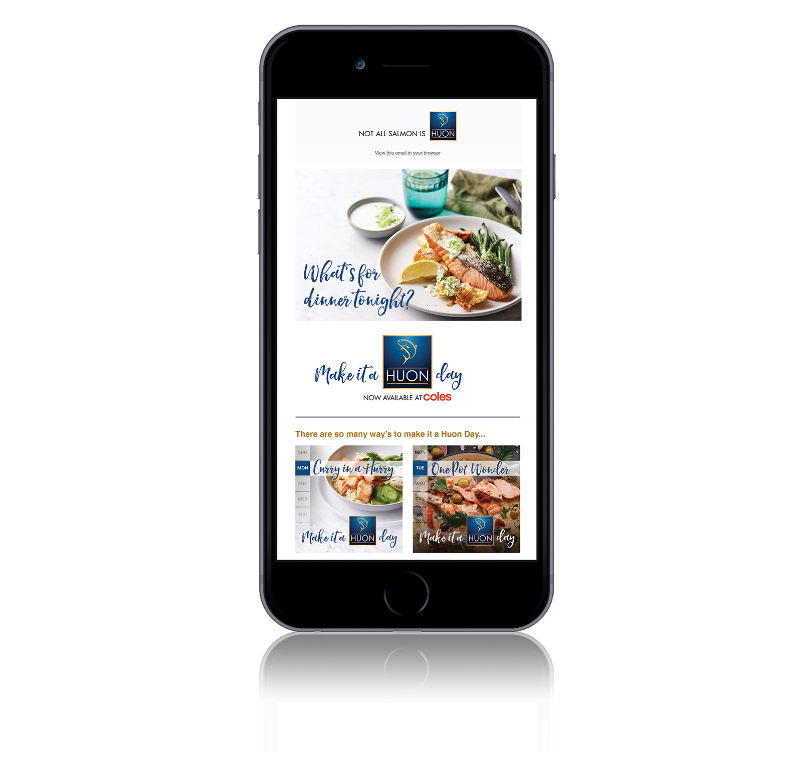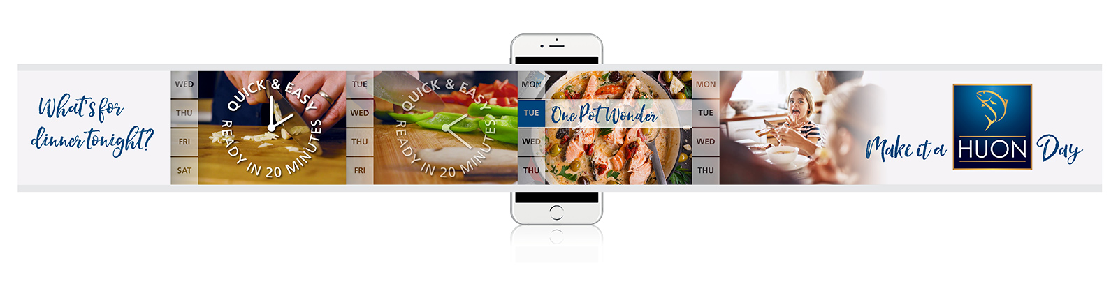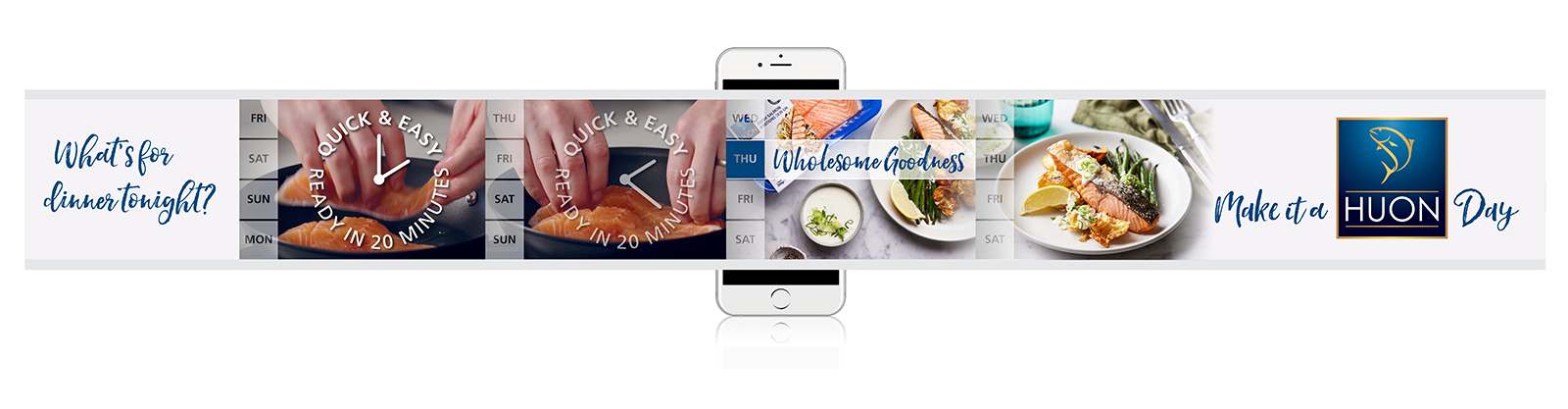 Huon approached us to create a campaign focusing on mid-week meals. A mood based strategy promoting Huon products release into Coles and driving the message of the benefits of Huon’s Premium Salmon products as a heathy and versatile protein, encouraging customers to include it more into their weekly shopping as well as Huon's unique selling point – being the only seafood producer that holds a RSPCA Approved certification in Australia because of their farming practices.