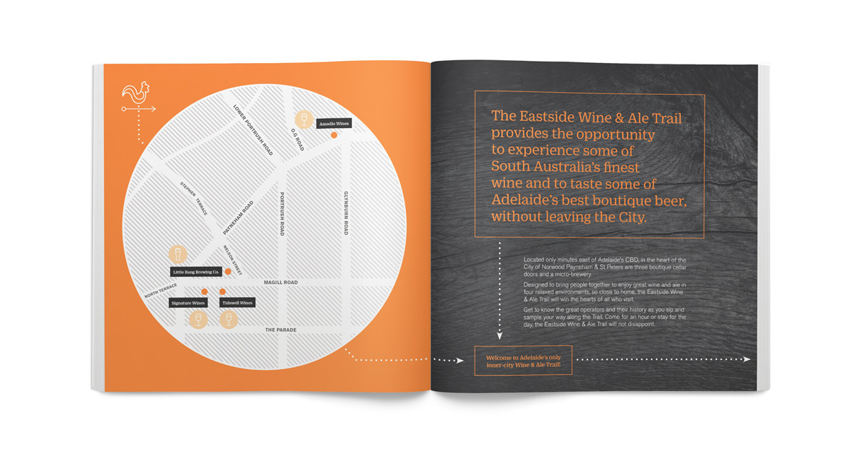 The City of Norwood Payneham and St Peters in Adelaide's inner east is home to a thriving food and beverage scene – and Adelaide's only inner city wine and ale trail. Motiv was commissioned to brand the 'Eastside Wine and Ale Trail' to promote the cellar doors of the wineries and breweries in the area.