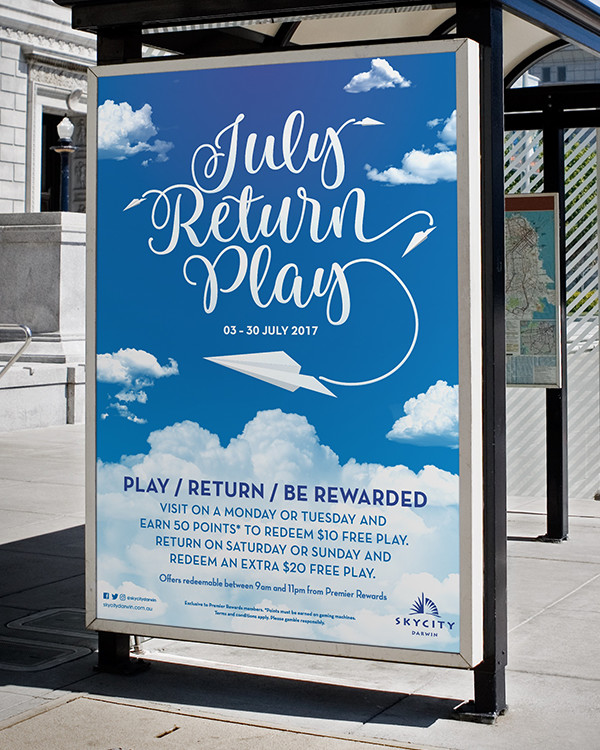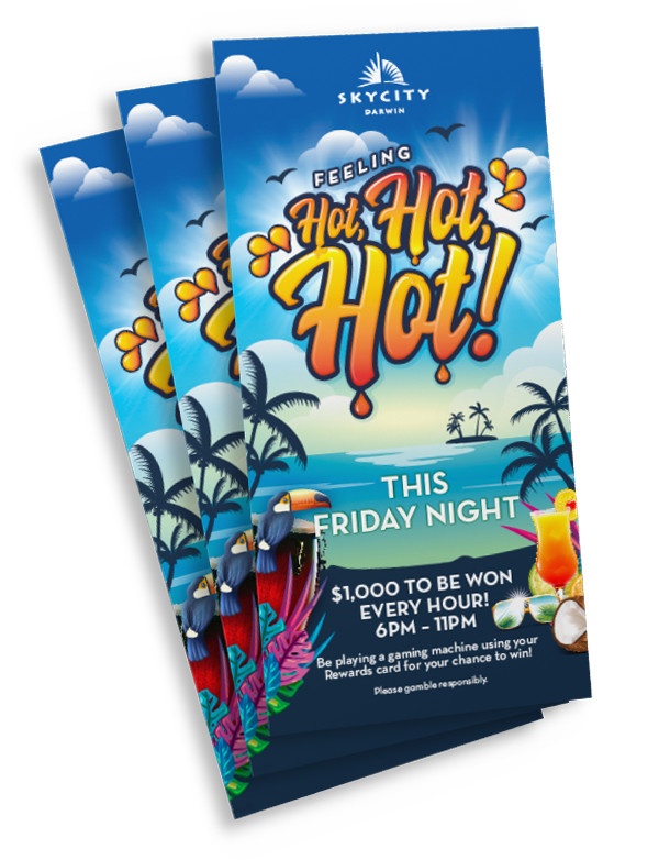Motiv have worked with Skycity Darwin designing custom thematics for various campagns and promotions as well as rolling out associated collateral such as direct mail, print and online advertising, animated graphics, display signage, P.O.S and marketing collateral.