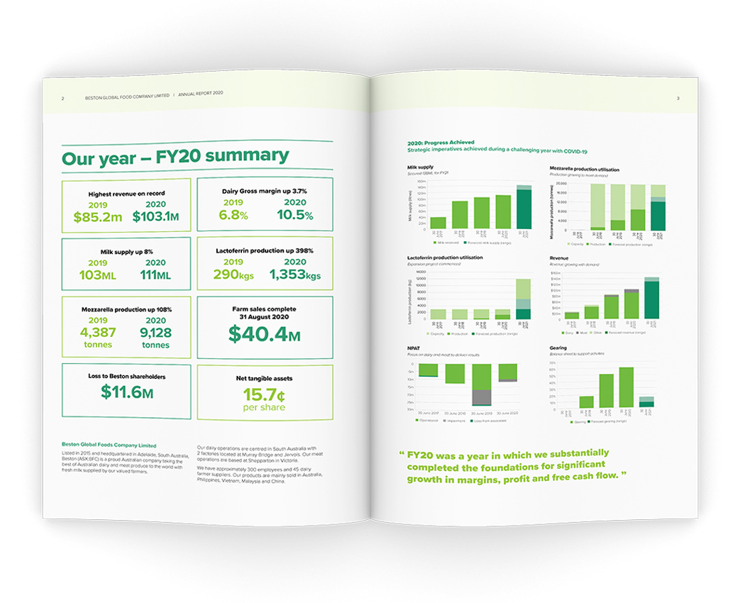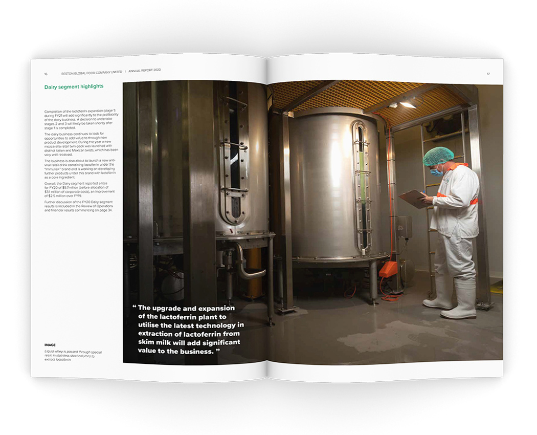 Following the successful delivery of last year's annual report, Motiv was again tasked with producing and managing the 2020 Annual Report, Financial Report and ASX results announcement and a full suite of photography of their facilities and board members.