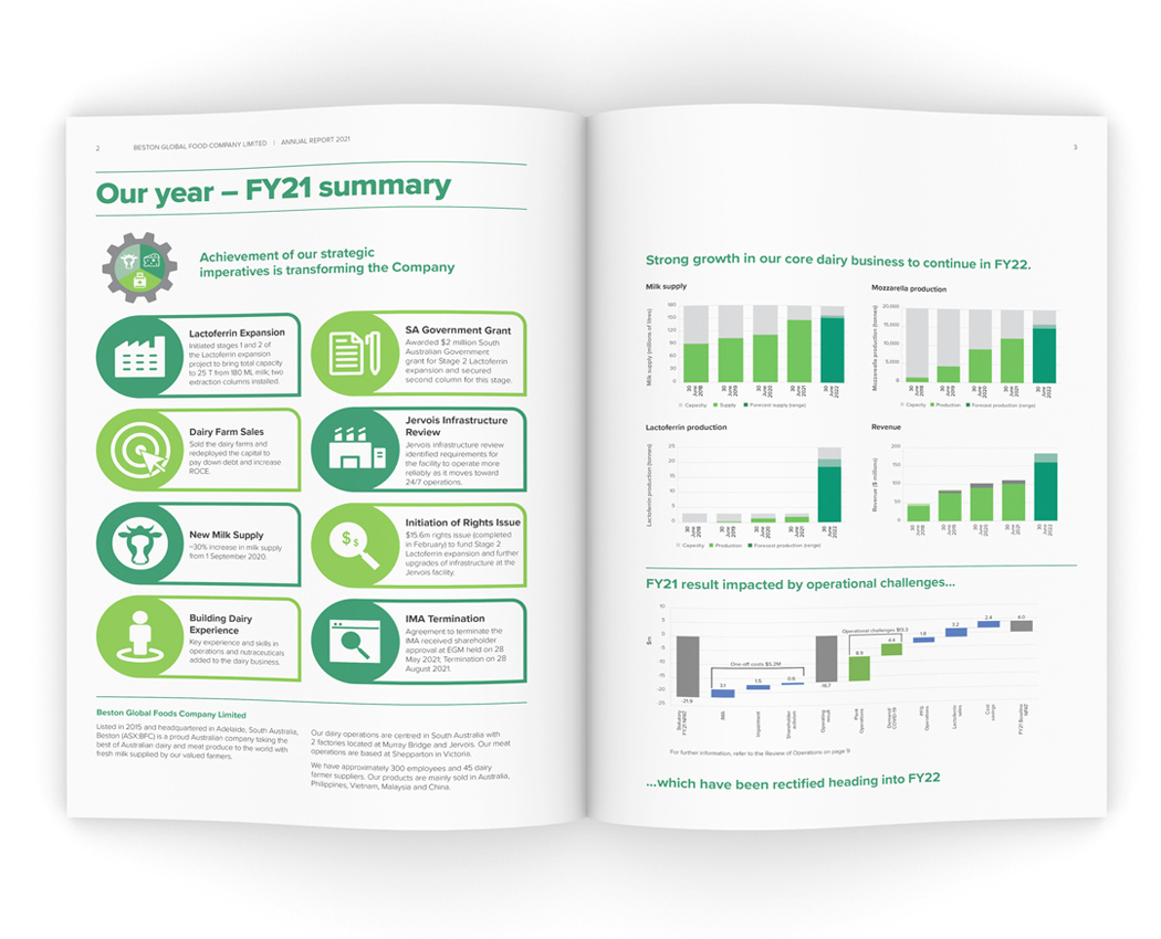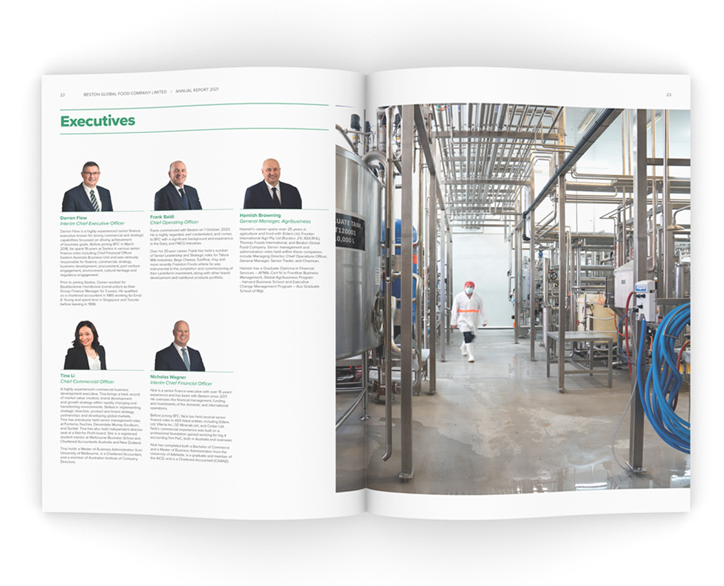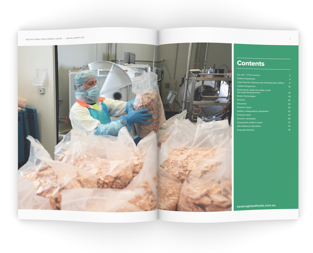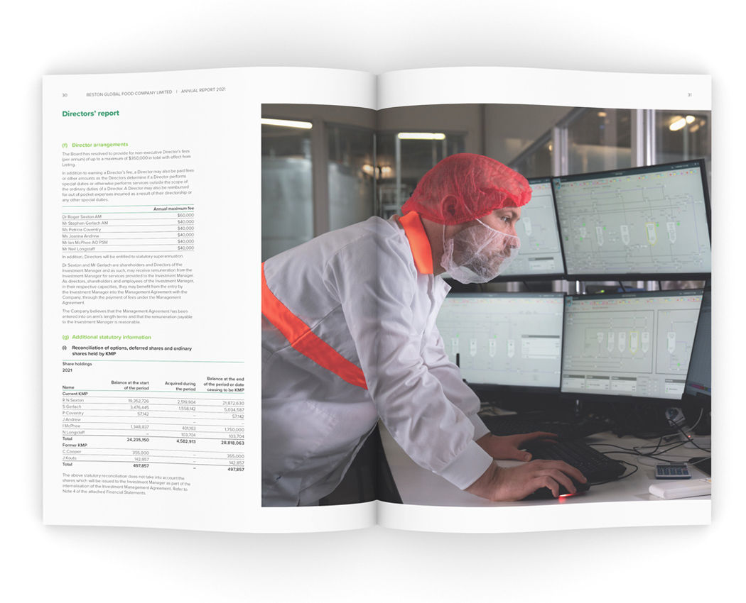 For Beston, the 2021 financial year was one of both resilience in the face of the global COVID-19 epidemic, and growth with the construction of a new Lacoferin plant that will set the company in good stead for the future. The sizeable investment was the main focus for this year's report and we documented the new development, art directing a photoshoot (photography by James Knowler at JKTP) which took in the entirety of the high-tech process.